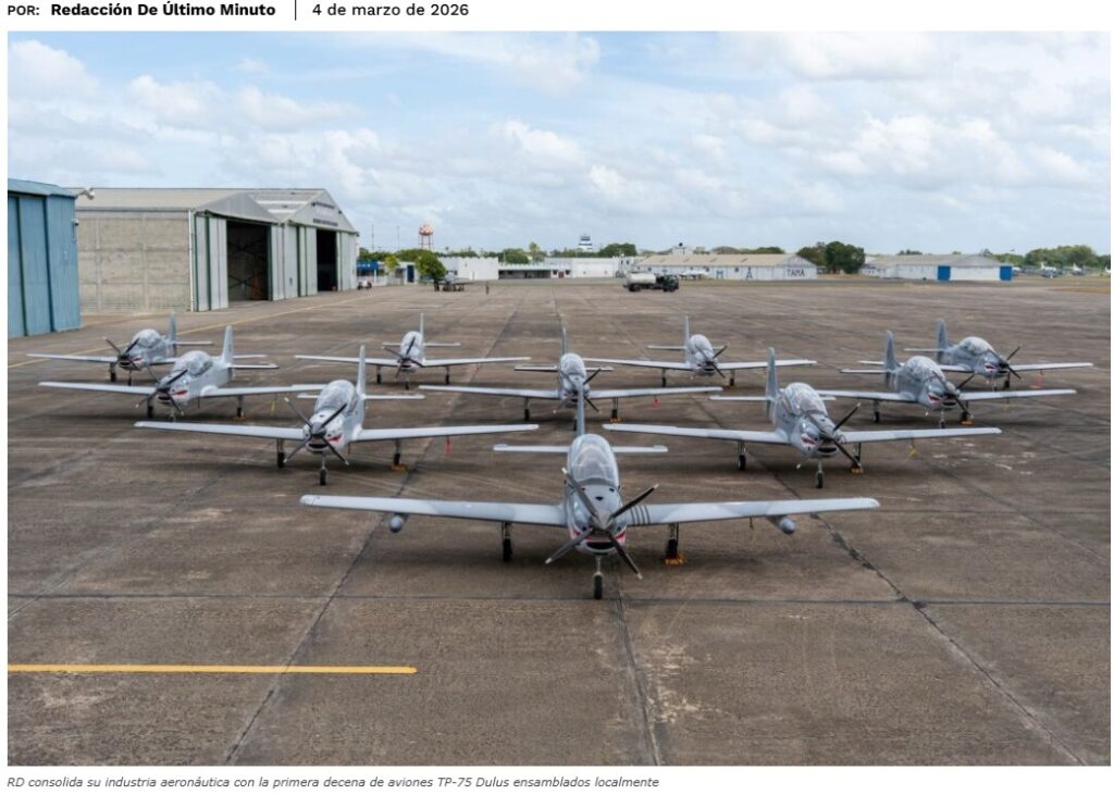 SANTO DOMINGO – The Dominican Republic is advancing its position as a regional leader in the assembly of military patrol and training aircraft, having put into operation the first ten TP-75 Dulus aircraft assembled in the country.